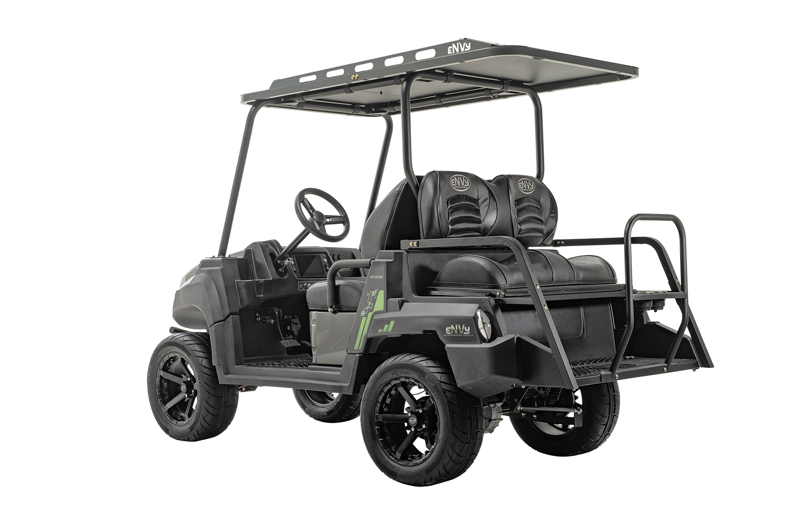 We’ve combined the smooth ride of a high-end golf cart with the rugged durability of a 4 seater UTV to create the eNVy. This ultra-quiet, brushless A/C, electric UTV golf cart will get some major attention whether you’re spending time with your family or putting it to work. The 4x2 golf cart top speed is 20 mph and comes packed with exceptional storage, seating options, 7” touch screen, and power steering will have you saying YES to America’s newest crossover!